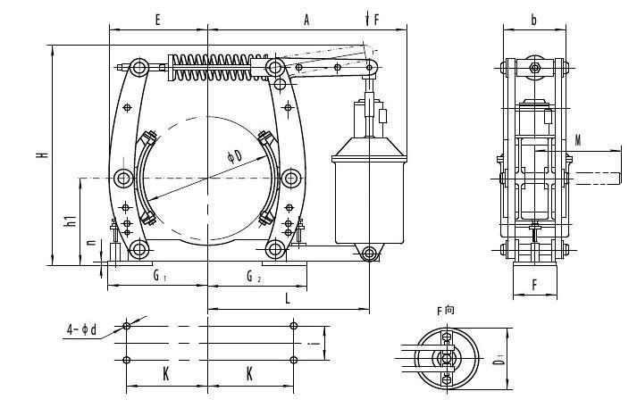 ▲ 采用YT1系列電力液壓推動(dòng)器推動(dòng)器;